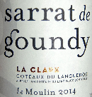 Domaine SARRAT DE GOUNDY le moulin 2014..un assemblage de syrah, grenache et carignan, un nez poivré, une attaque douce et aromatique, un vin tout en rondeur qui séduira les amateurs de fruits croquants, notre conseil: le carafer pour lui enlever ce côté petillant dû à une mise en bouteille récente..